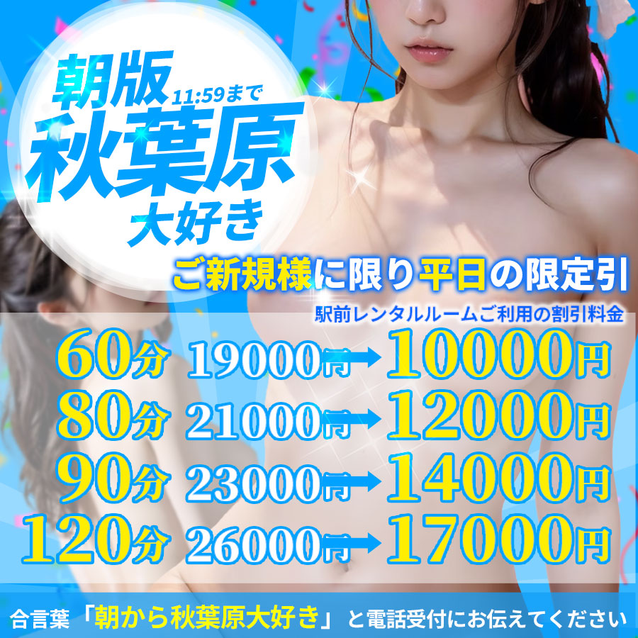 エリアについてご不明な点はオペレーターにお問い合わせください。ご利用場所はラブホテル・レンタルルームなど秋葉原のビジネスホテルに関しましてはデリヘルの利用ができないホテルもございますのでご不明な点はお電話でご確認ください。
